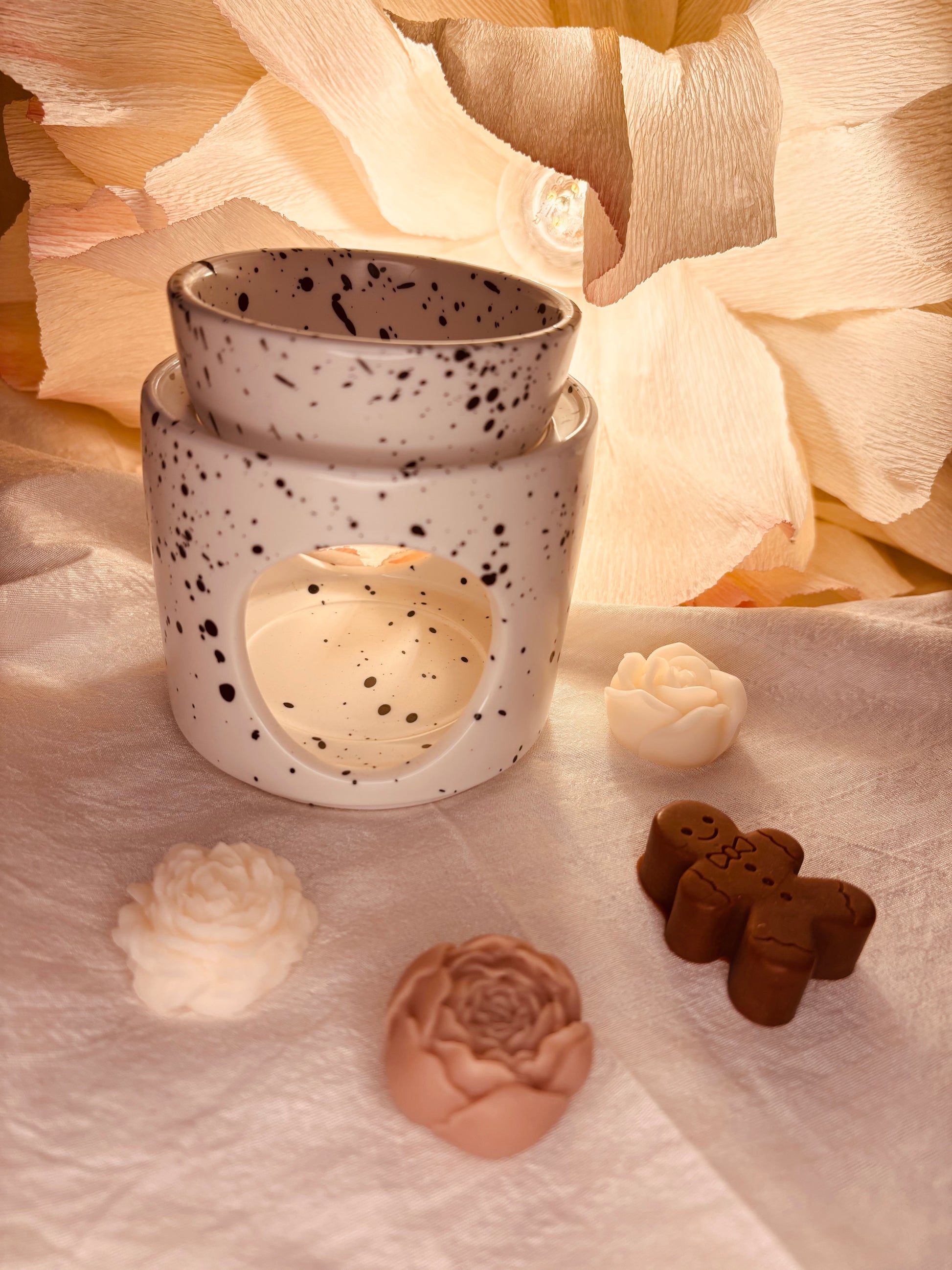 I bruciatori di essenze sciolgono delicatamente la cera e le torte profumate di ✨CHIARO DI LUNA✨, diffondendo un aroma rilassante e un'atmosfera incantevole. Goditi la magia del chiaro di luna a casa tua con questo elegante bruciatore di essenze.
