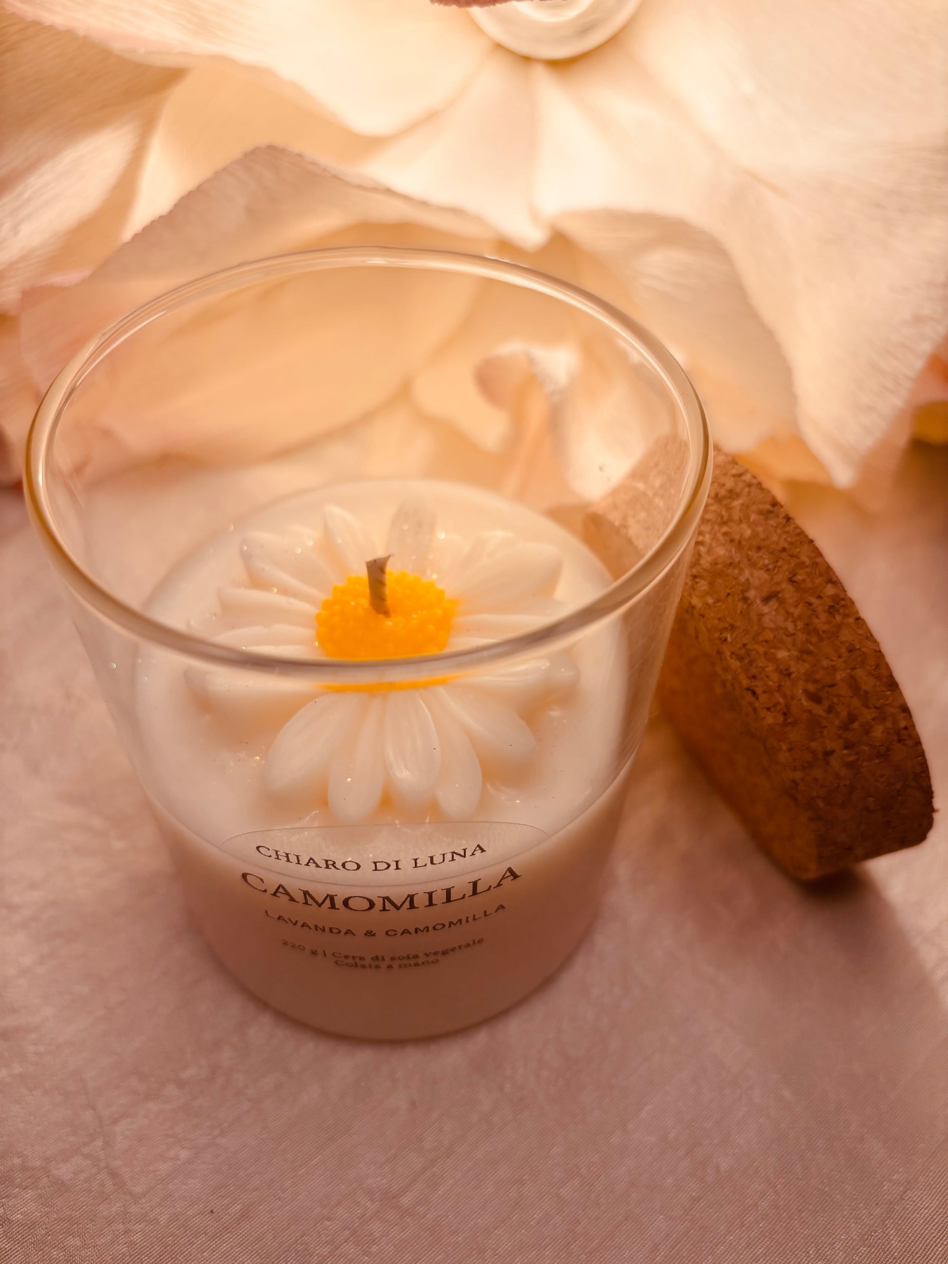 Regala calma e benessere ai tuoi sensi con la candela Camomilla, un equilibrio perfetto tra le note rilassanti della lavanda e la dolcezza naturale della camomilla.