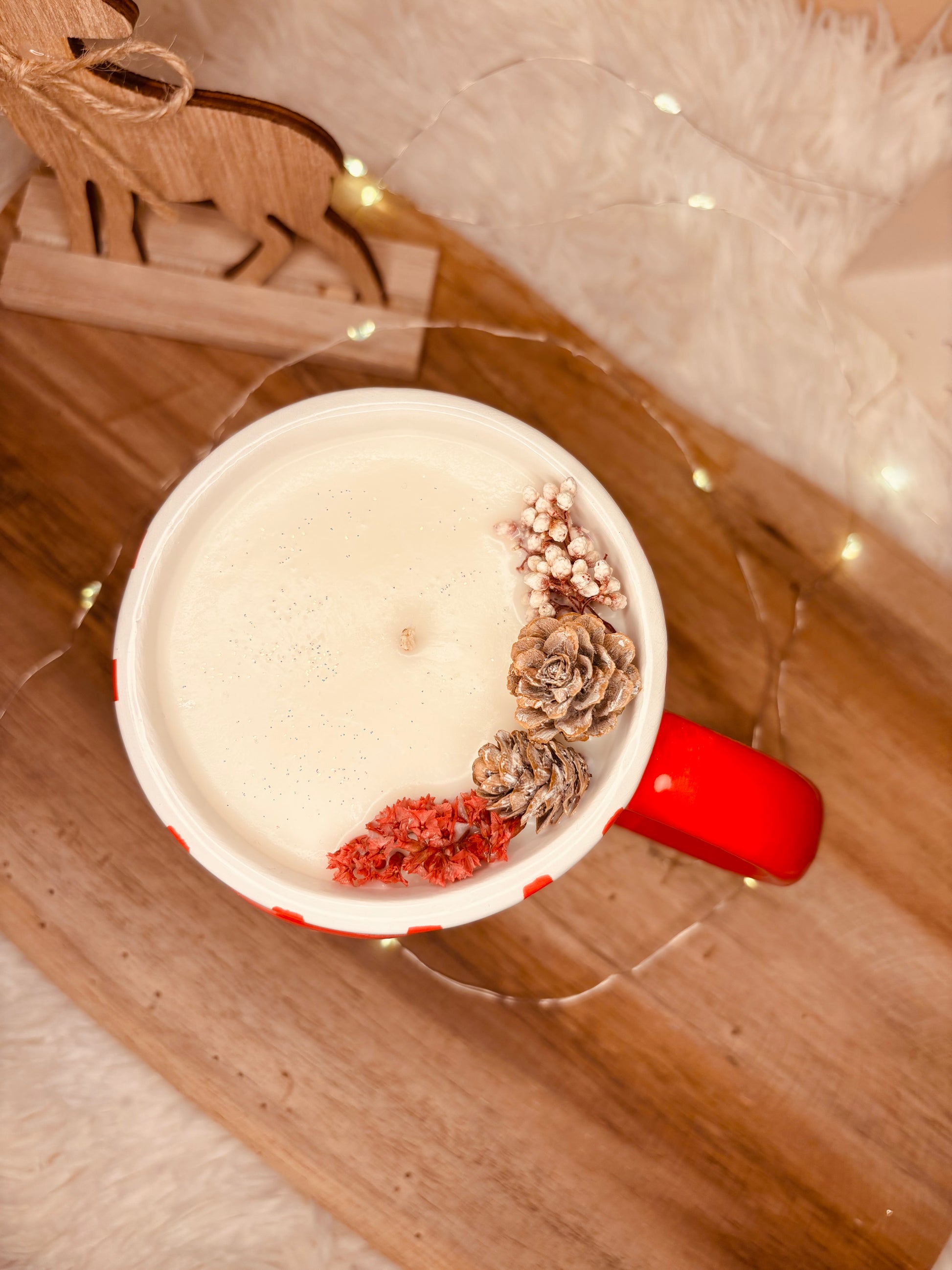 La Candela in Tazza al Cioccolato o Fiori di Loto è una piccola coccola di dolcezza, colata a mano in una tazza in ceramica e profumata con la calda fragranza di caramello.