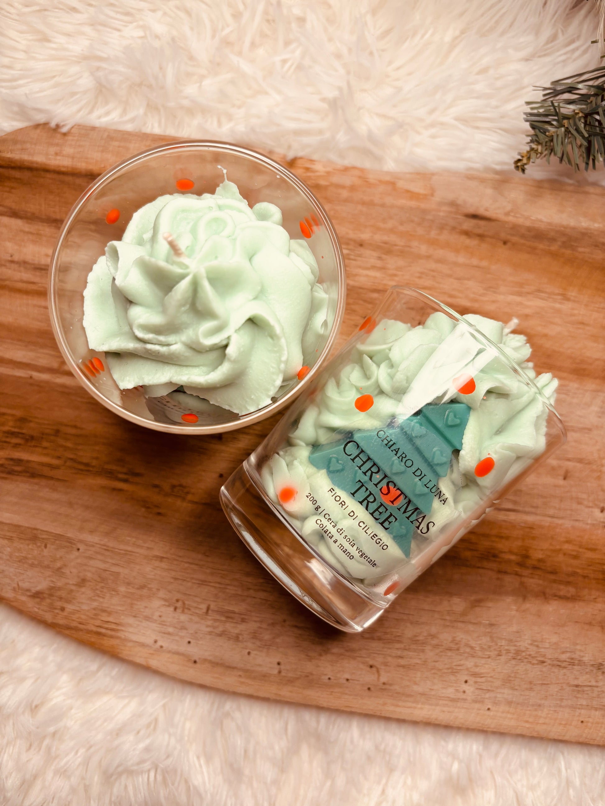 Illumina le tue feste con la candela profumata Christmas Tree, realizzata a mano con cera di soia 100% vegetale e una delicata fragranza di fiori di ciliegio.