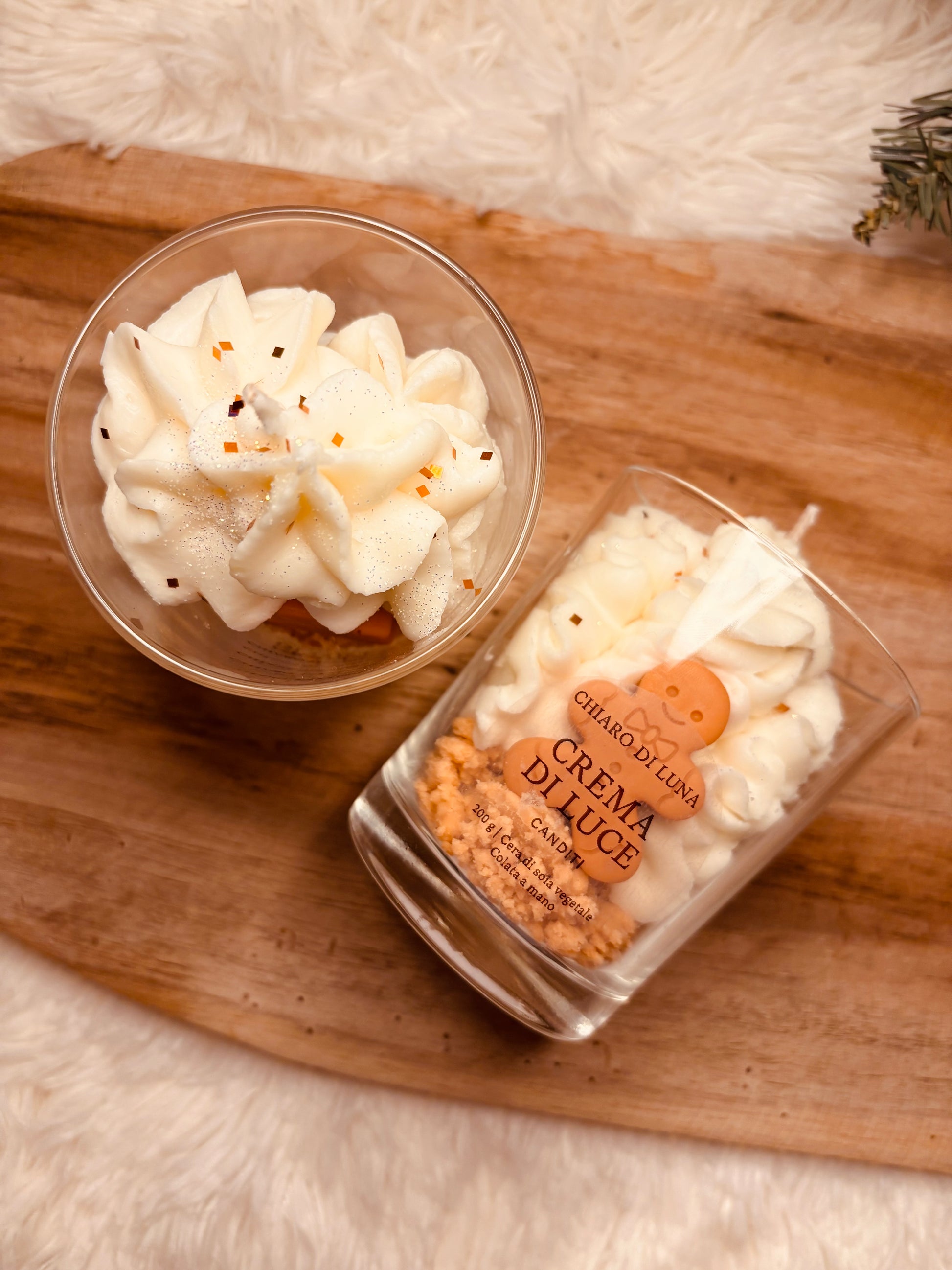 La sua fragranza ai canditi riempie l’aria di note calde e zuccherine, mentre la cera di soia vegetale si scioglie lentamente, sprigionando un’atmosfera accogliente e luminosa.
