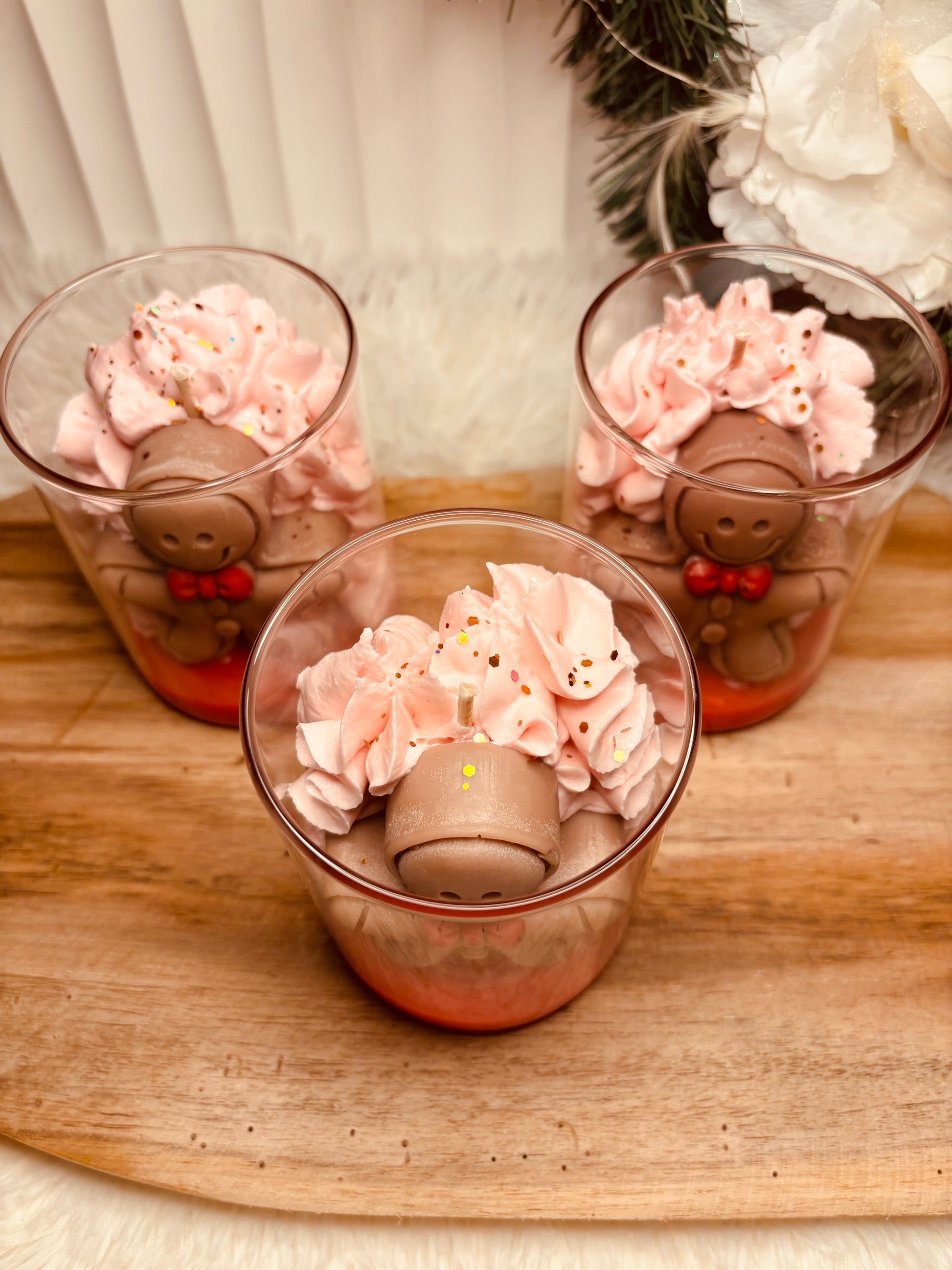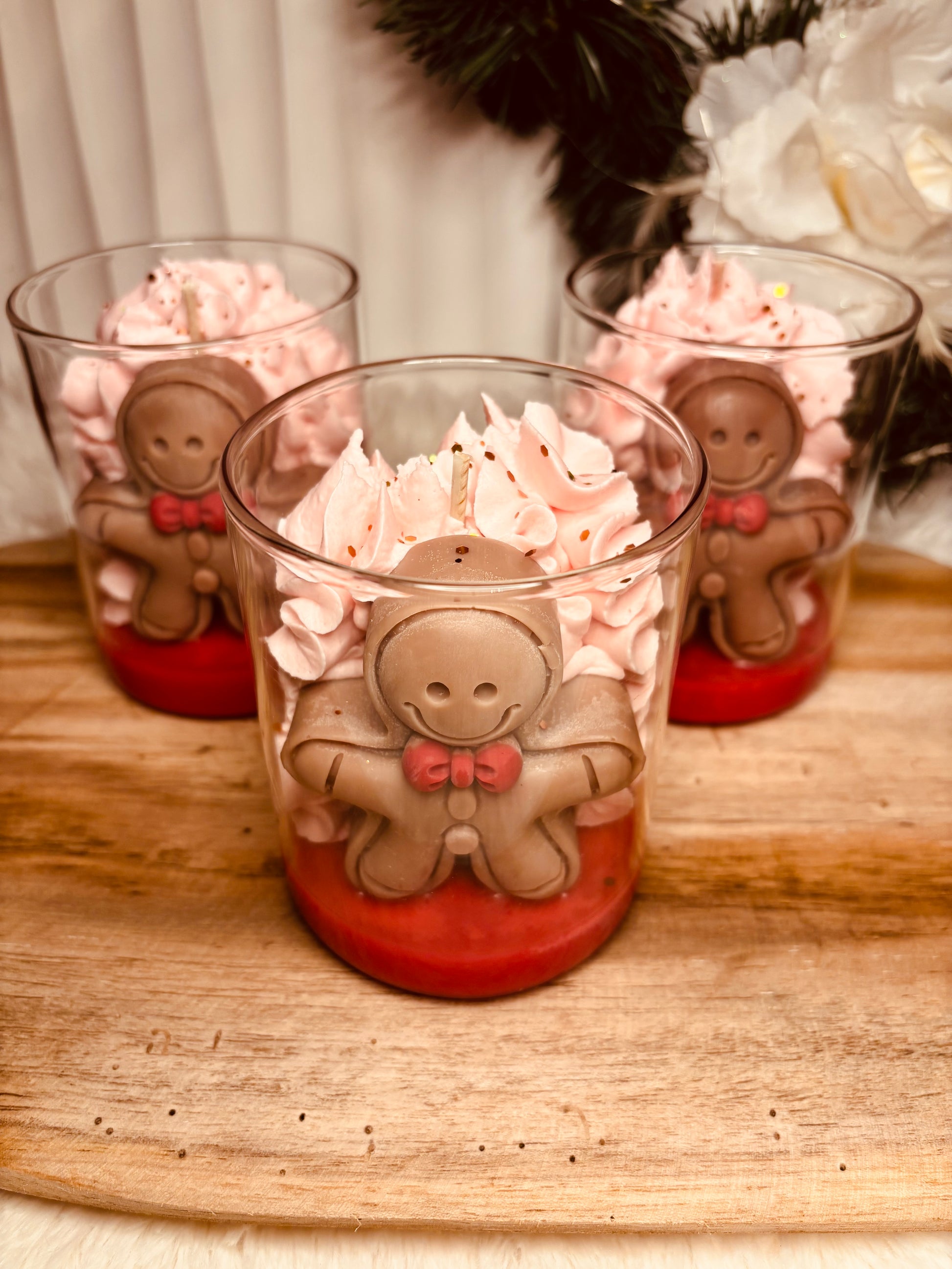 Realizzata in cera di soia naturale, lavorata con la delicata tecnica “panna montata”, custodisce al suo interno un tenero omino di marzapane che rende ogni pezzo unico.