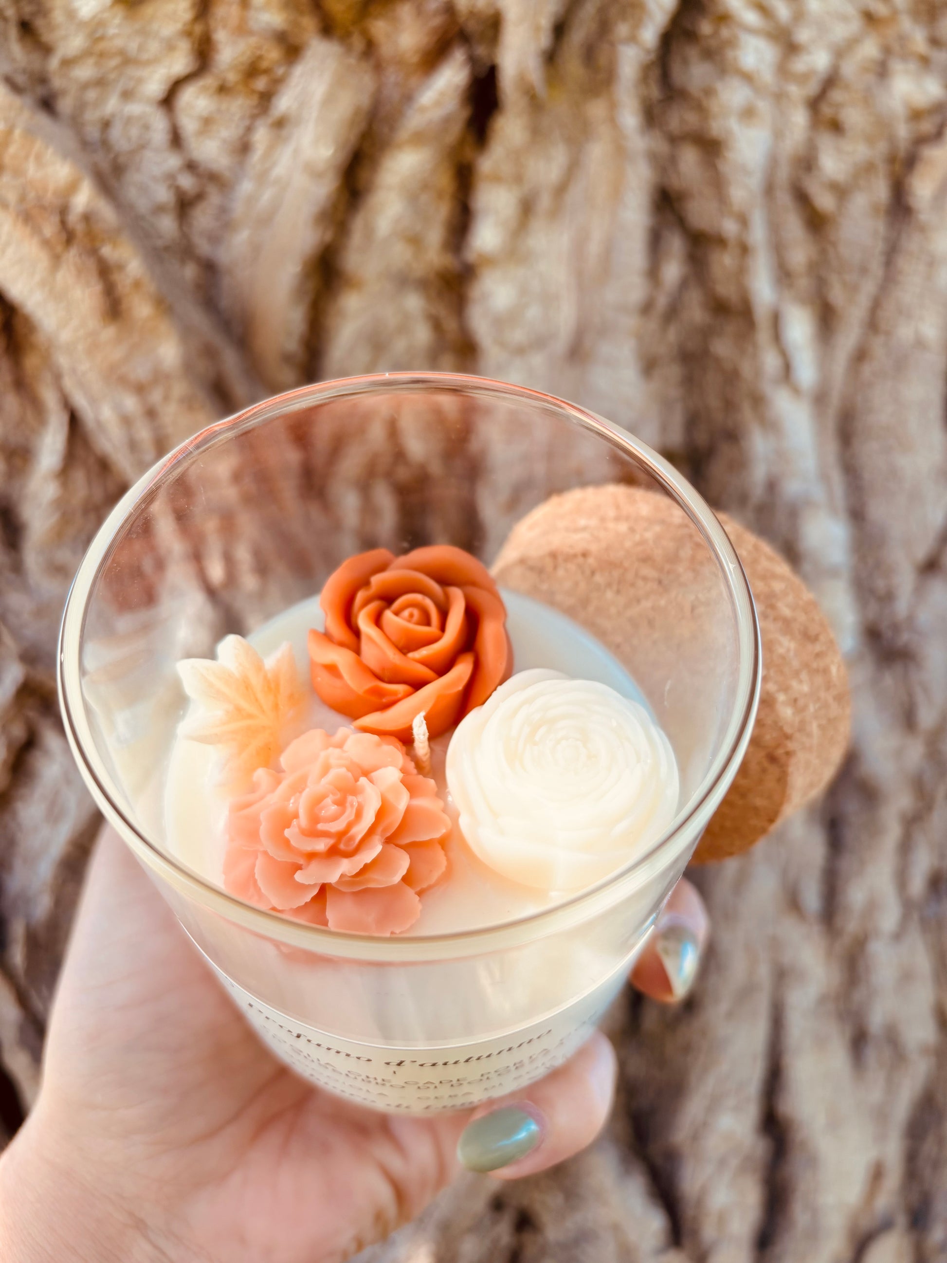 Esalta la tua casa con la candela Profumo d'autunno, fatta a mano con cera di soia vegetale. I colori scelti richiamano l'autunno, per un'atmosfera calda e accogliente. Realizzata con ingredienti naturali, è la scelta perfetta per chi cerca un profumo unico e non invasivo.