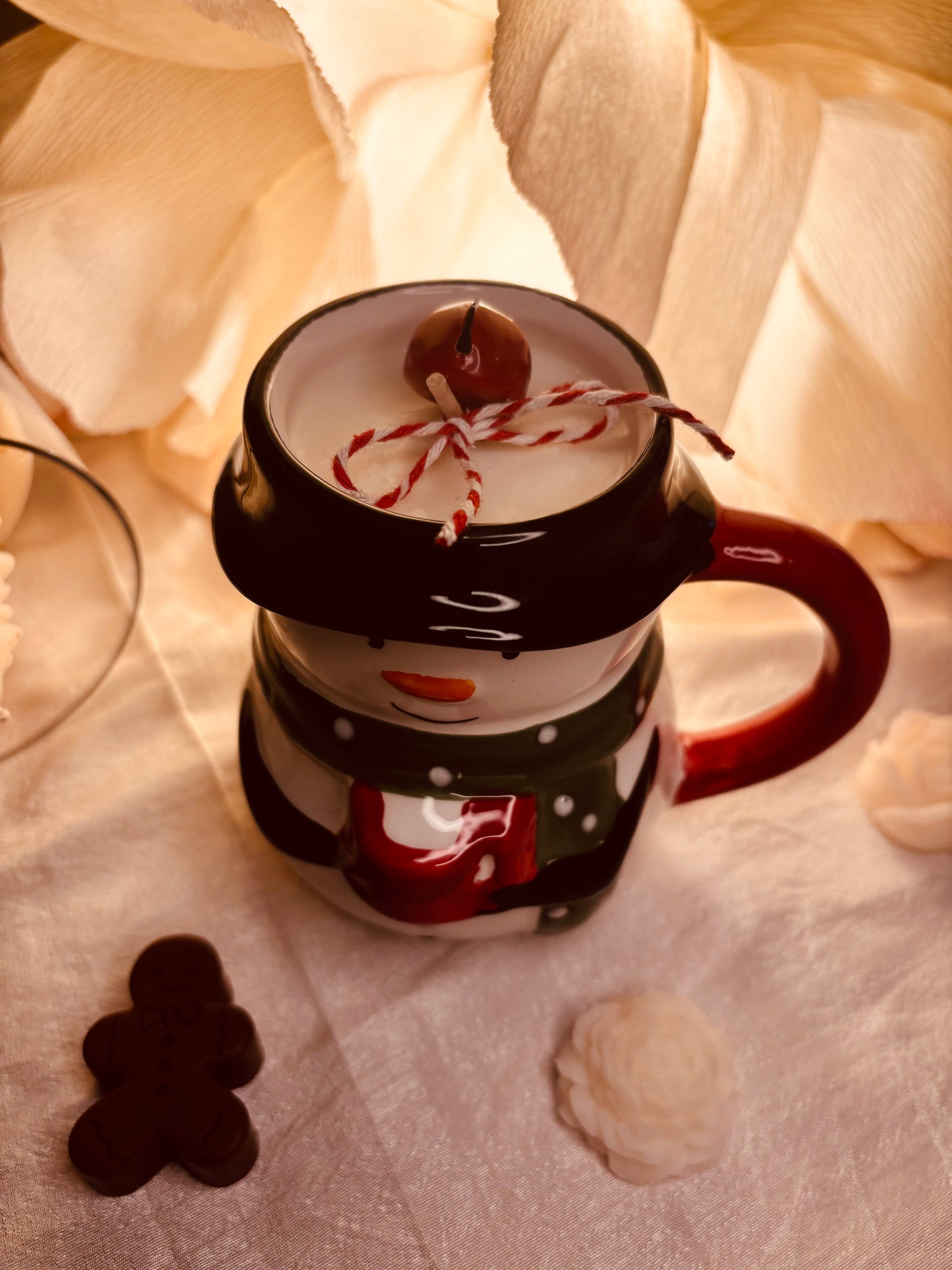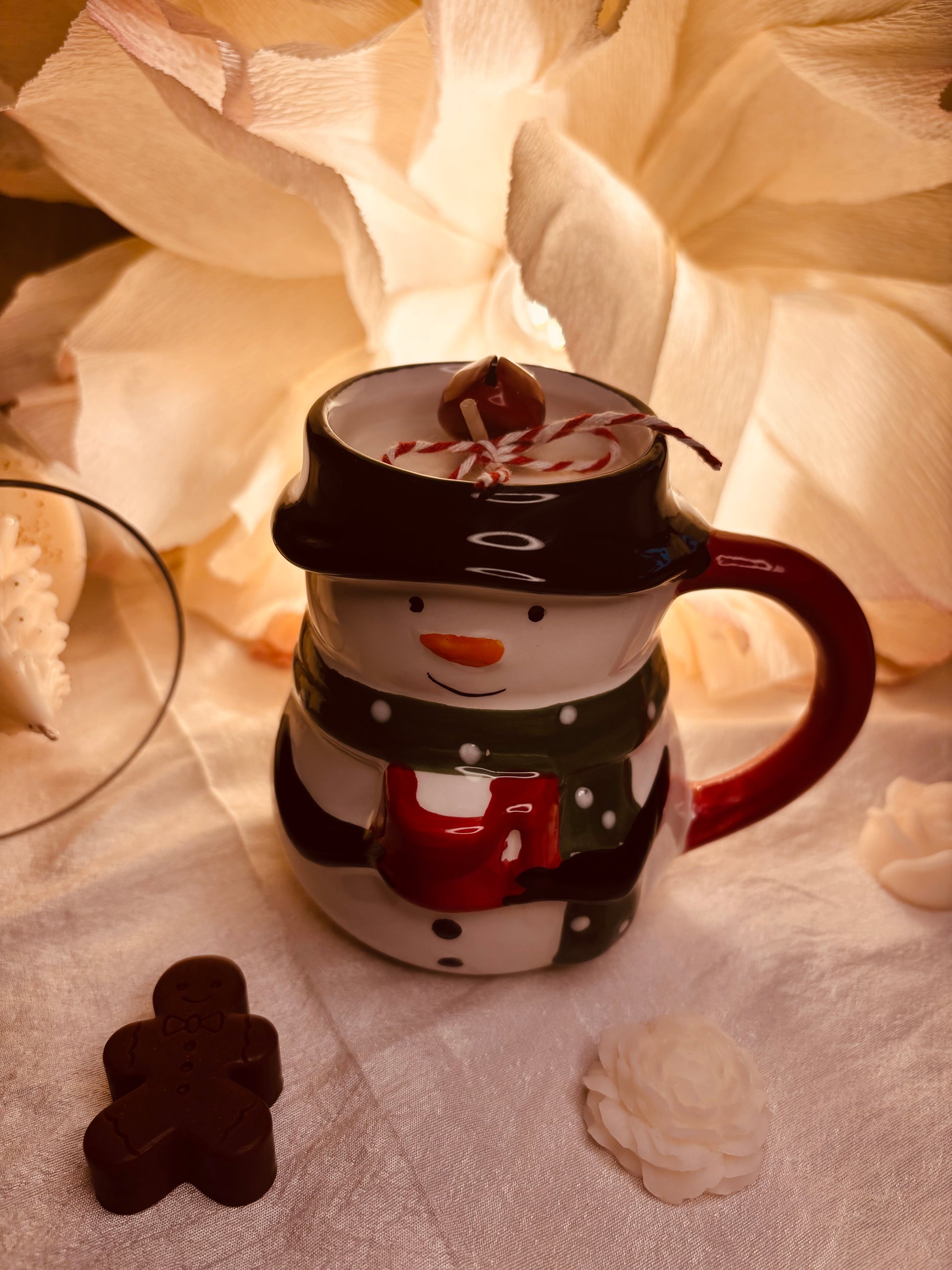 Illumina le tue feste natalizie con la nostra candela artigianale a forma di Pupazzo di Neve. Realizzata con cera di soia di alta qualità e al 100% vegetale, il suo contenitore in forma di pupazzo di neve creerà un'atmosfera calda e avvolgente nella tua casa. Perfetta anche come regalo natalizio.