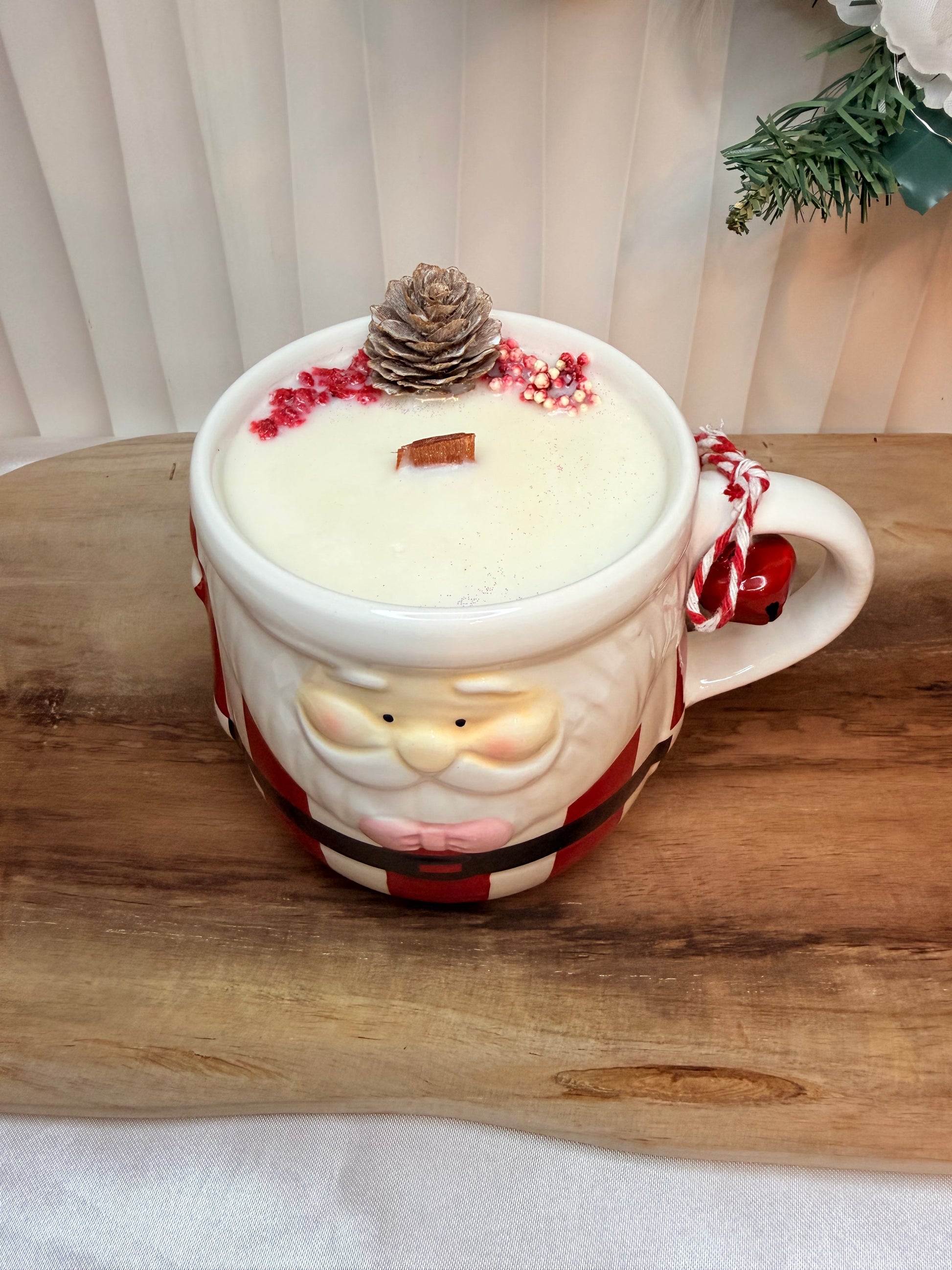 Colata a mano in una tazza in ceramica decorata con Babbo Natale, diffonde luce e armonia, regalando alla casa un’atmosfera magica e accogliente.