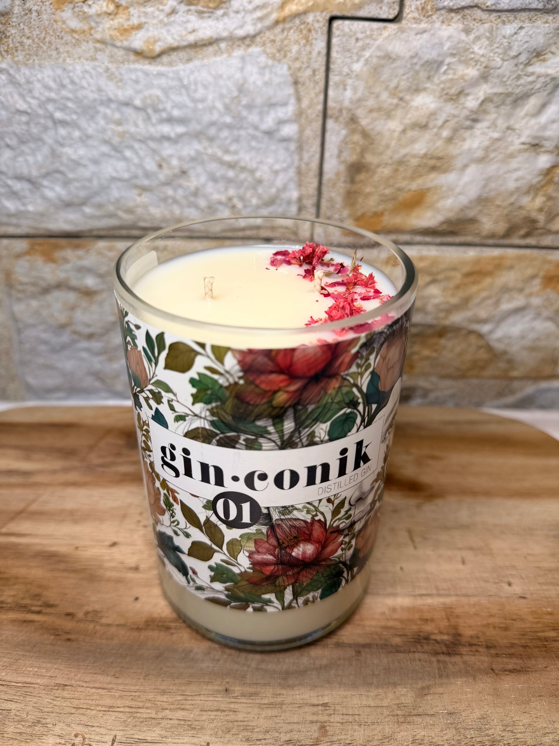 La Candela Gin Conik nasce dalla bottiglia originale di Gin Conik, tagliata a mano e trasformata in una candela artigianale dal carattere unico. Ogni pezzo è colato a mano con cura, rendendo ogni creazione irripetibile e autentica.