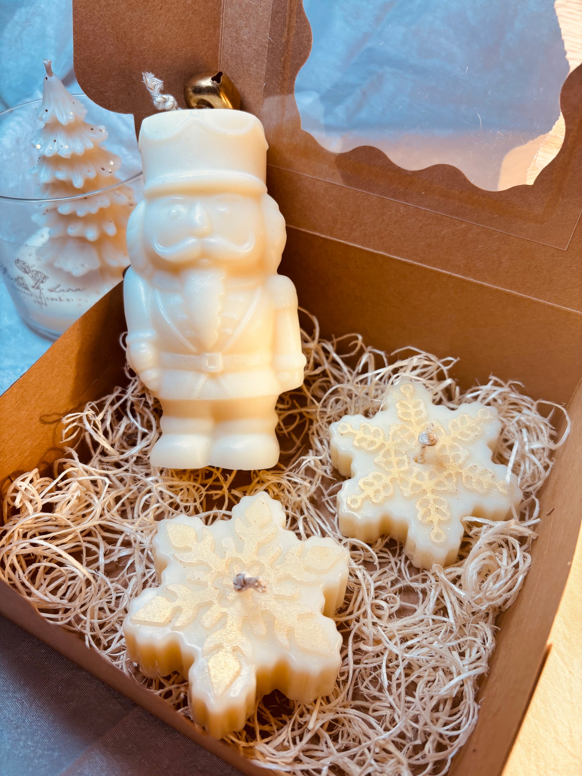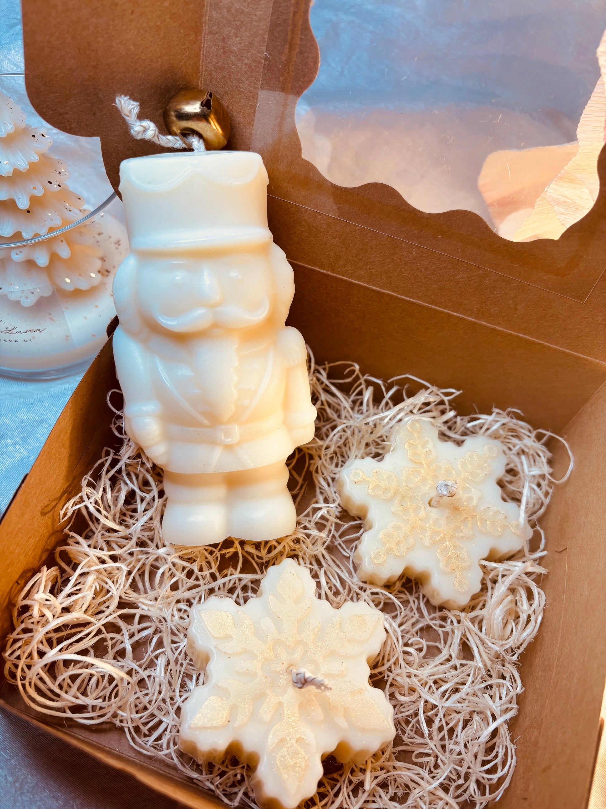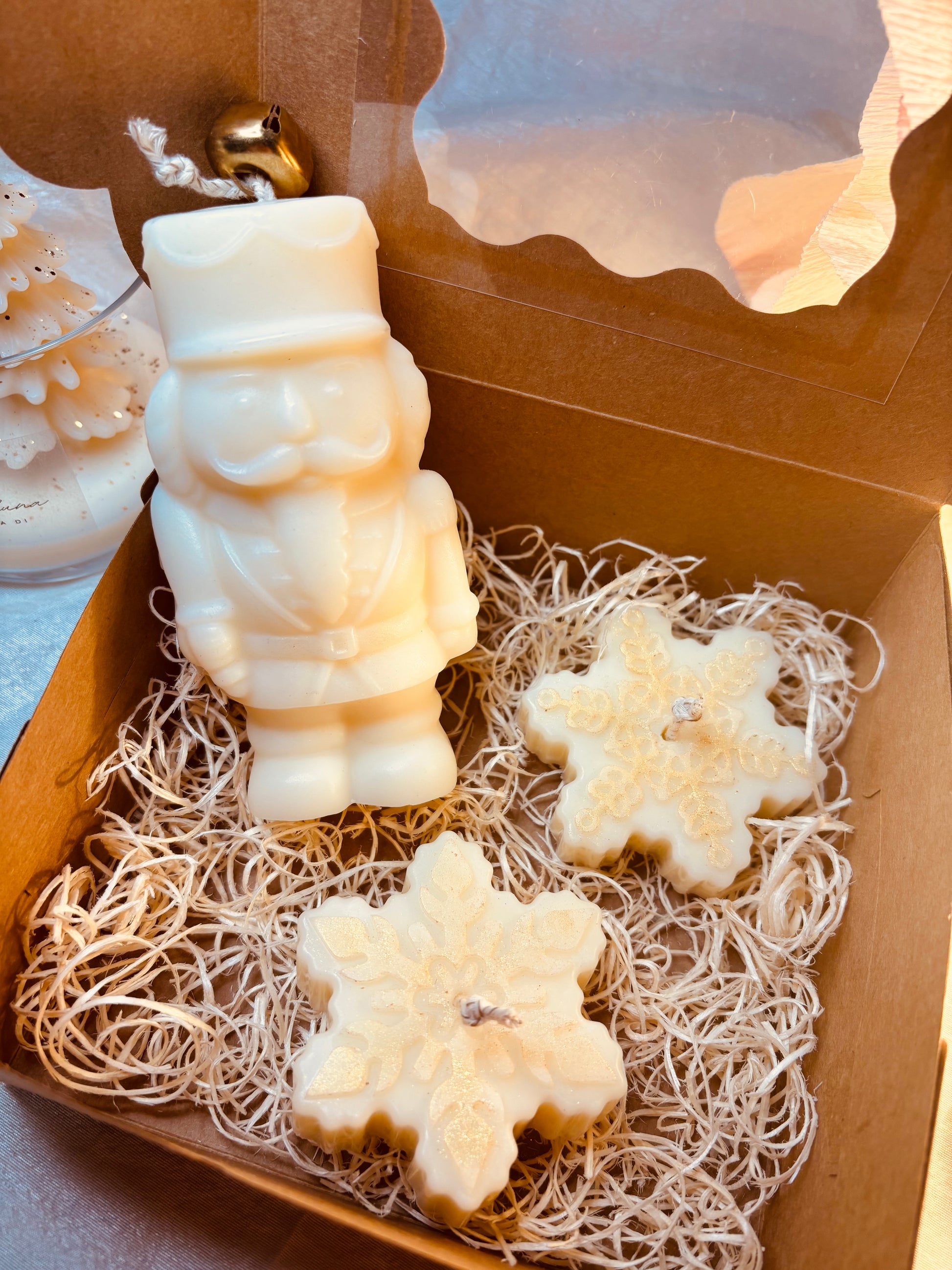Questo set Schiaccianoci è realizzato interamente in cera di soia vegetale, che lo rende non solo eco-friendly, ma anche più resistente e durevole. La box include uno schiaccianoci e due fiocchi di neve, ideali per decorare la tua casa durante le festività natalizie o per un originale regalo di Natale. Dona un tocco di eleganza e originalità alla tua casa con questo set.