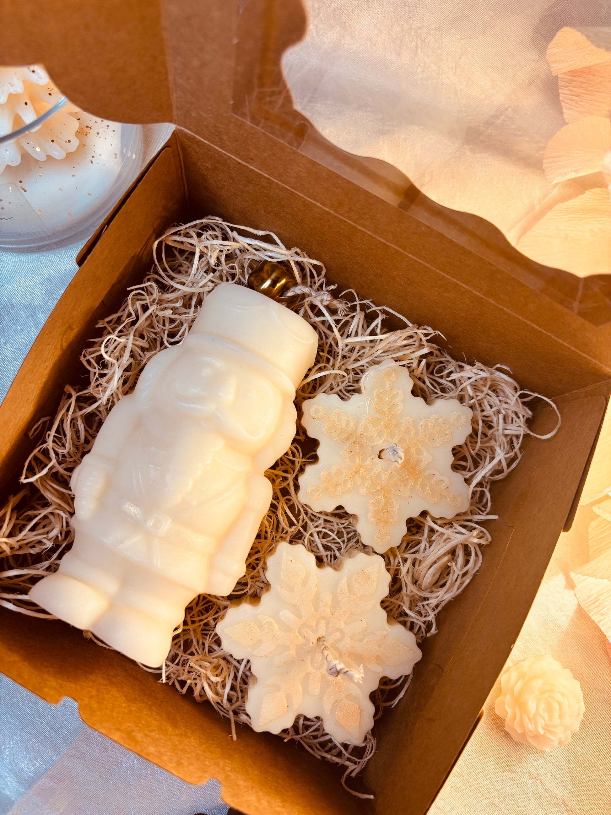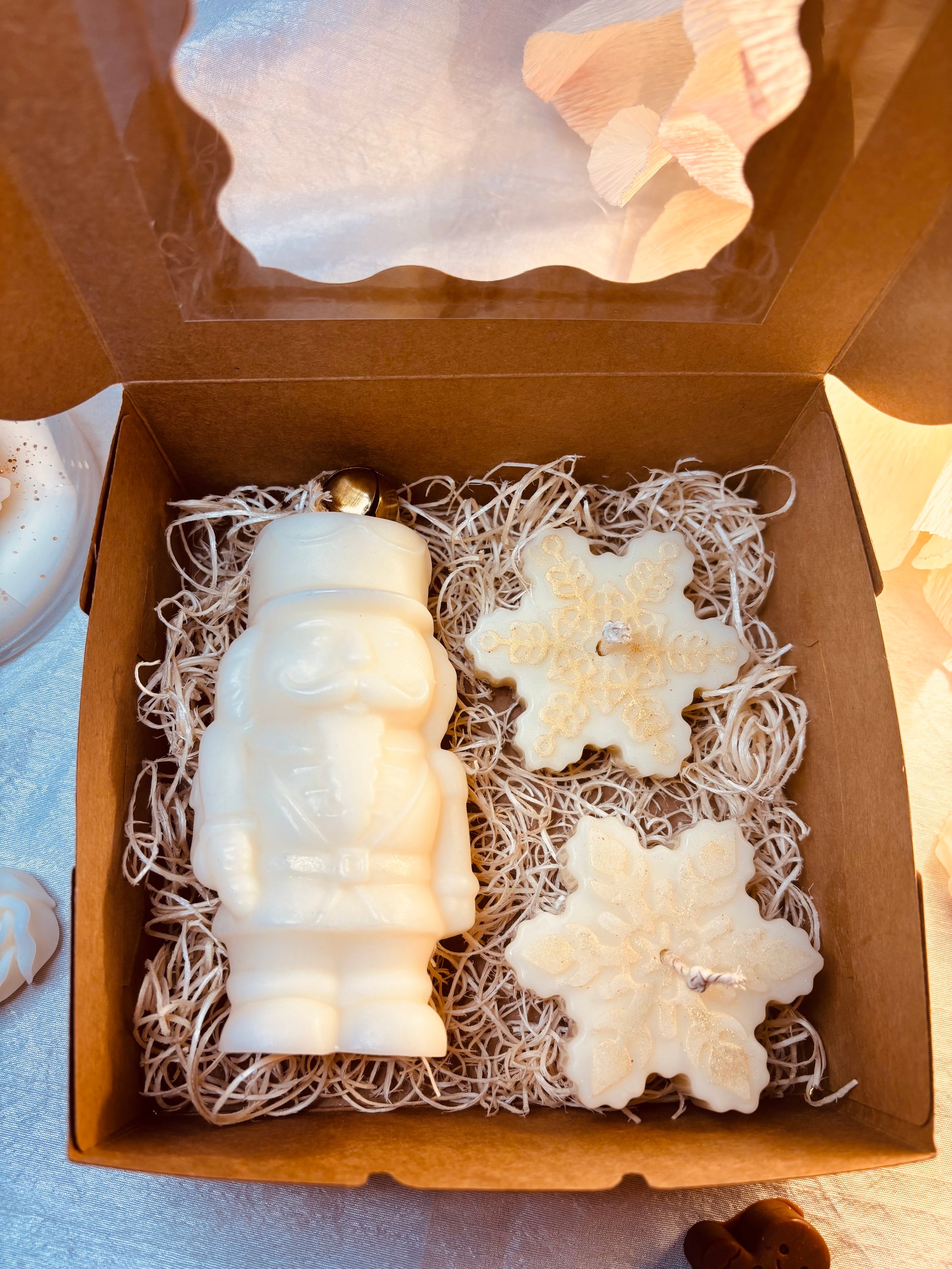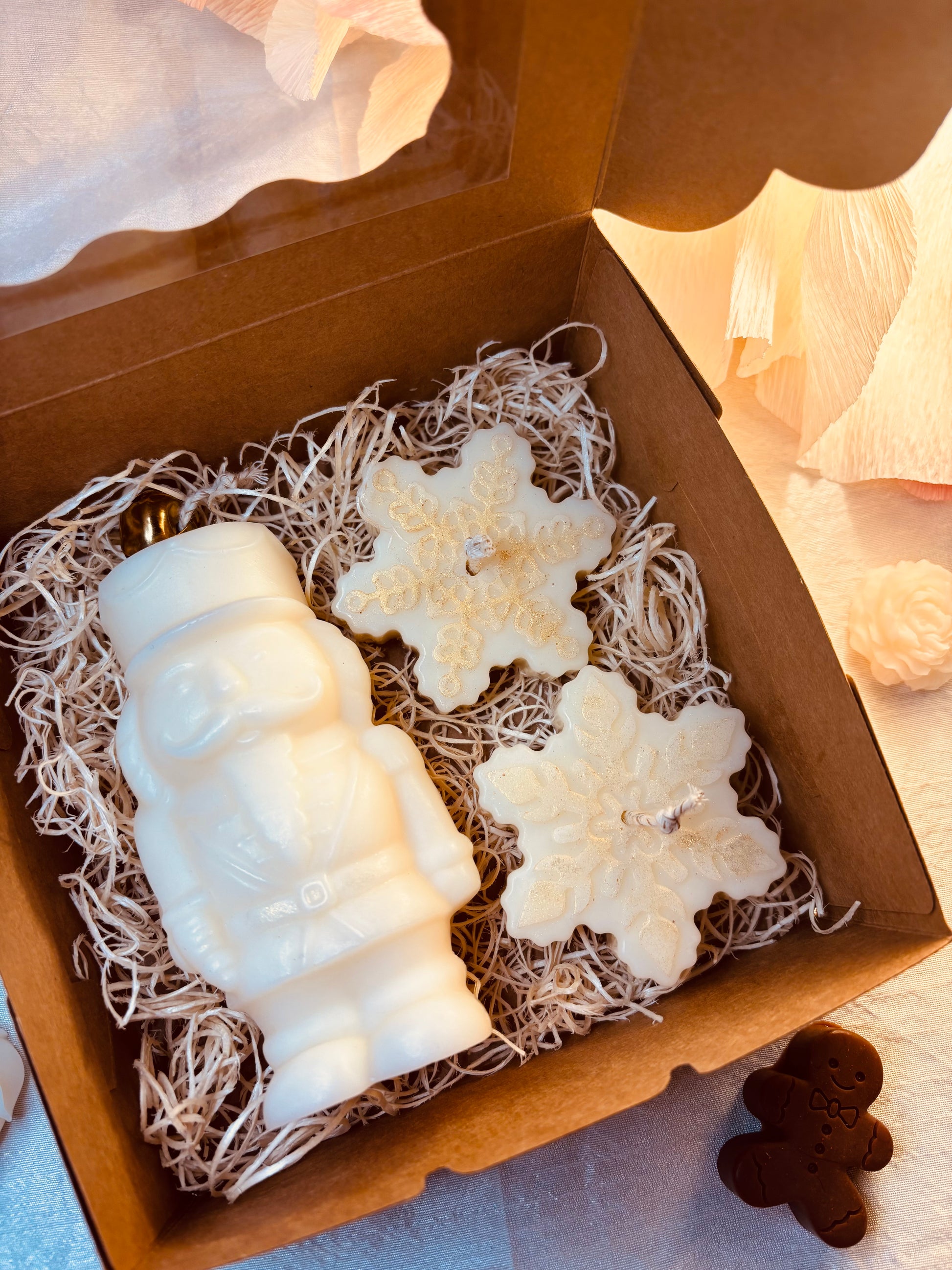 Questo set Schiaccianoci è realizzato interamente in cera di soia vegetale, che lo rende non solo eco-friendly, ma anche più resistente e durevole. La box include uno schiaccianoci e due fiocchi di neve, ideali per decorare la tua casa durante le festività natalizie o per un originale regalo di Natale. Dona un tocco di eleganza e originalità alla tua casa con questo set.